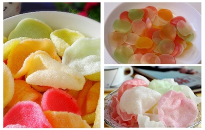 There are two methods of making potato prawn crackers, first method is to use the potato powder instead of 10 - 20% starch, the production process is is similar with traditional method. Adding the whole potatoes powder in the prawn cracker can increase the nutritional value and swelling degree. Another method is to use of fresh potatoes though a series of processing made into the similar with prawn cracker product, known as potato chips.